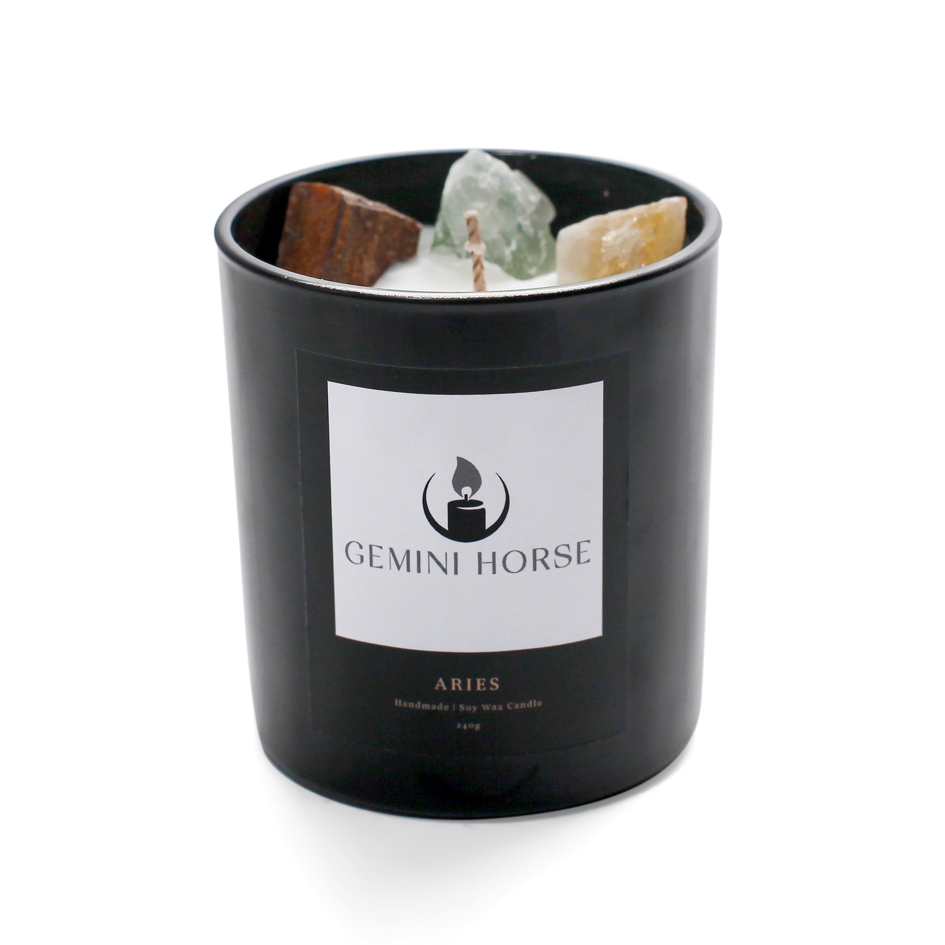 Introducing Aeries, the candle that brings a touch of luxury to your everyday life. This beautiful candle is made with a blend of rose and wood scents and is adorned with gemstones that represent adventure, growth, and happiness. Whether you're looking to add a touch of elegance to your home or seeking a unique gift for a loved one, Aeries is sure to impress.